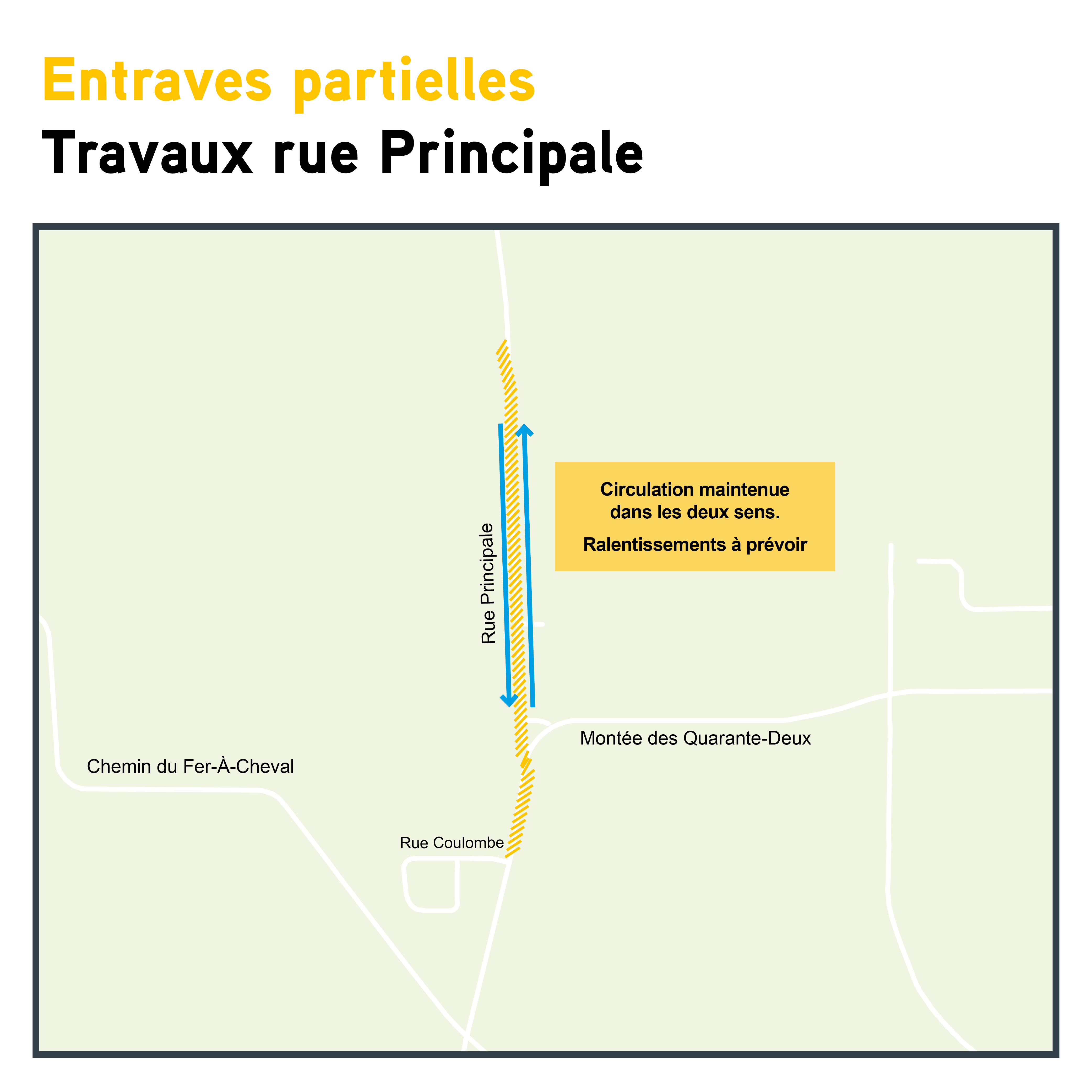 Le vendredi 1er février, entre 8 h et 16 h, nous procéderons à des travaux de forage sur la rue Principale, entre la rue Coulombe et les limites de la municipalité de Saint-Amable. La circulation sera maintenue dans les deux directions en tout temps, mais ces travaux pourraient occasionner des ralentissements dans le secteur.