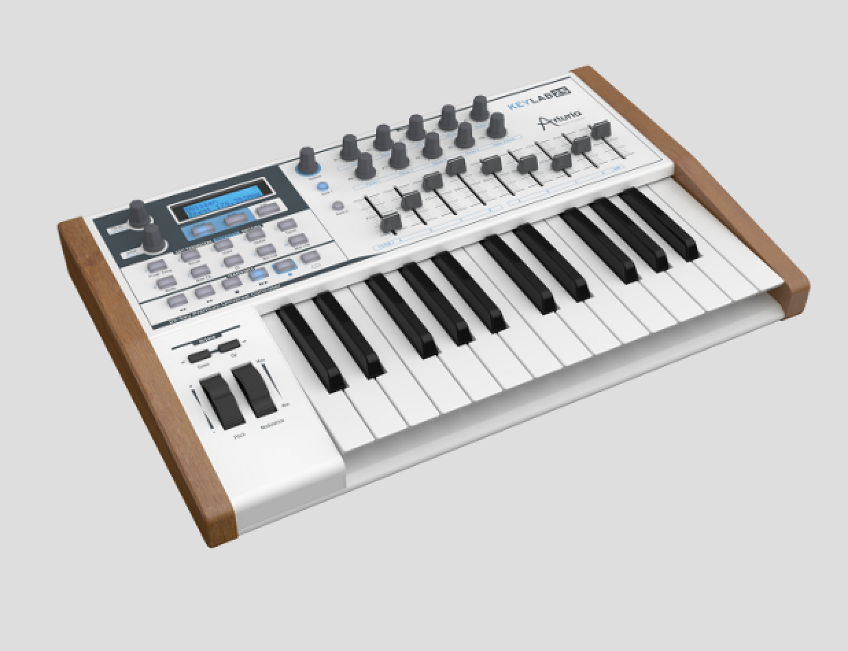 Ce clavier MIDI, connecté à un ordinateur, sert d’interface de contrôle pour différents instruments numériques à travers un DAW (Adobe Audition). Le logiciel Analog Lab software permet des actions plus avancées.